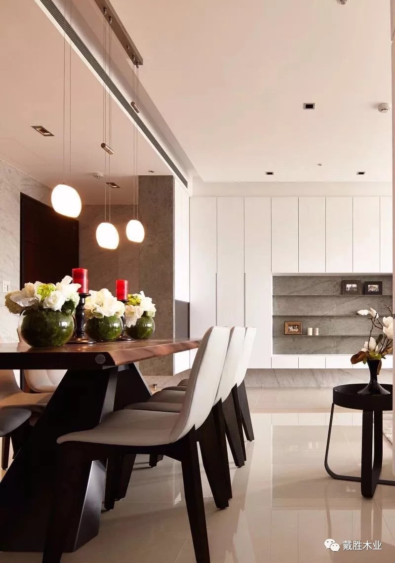 設(shè)計(jì)師將它與日常就餐區(qū),有效的結(jié)合在一起,整體流暢有序、也潔凈。